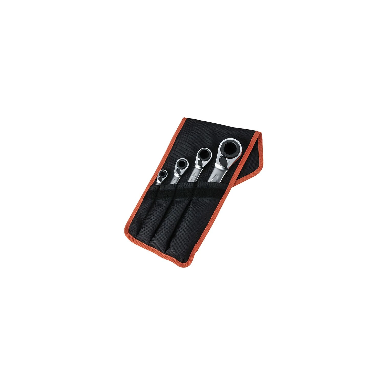 This Bahco Reversible Ratchet Spanner Set comprises of 4 spanners covering 16 sizes. Supplied in a fabric carry case with belt loop for easy transportation and storage.