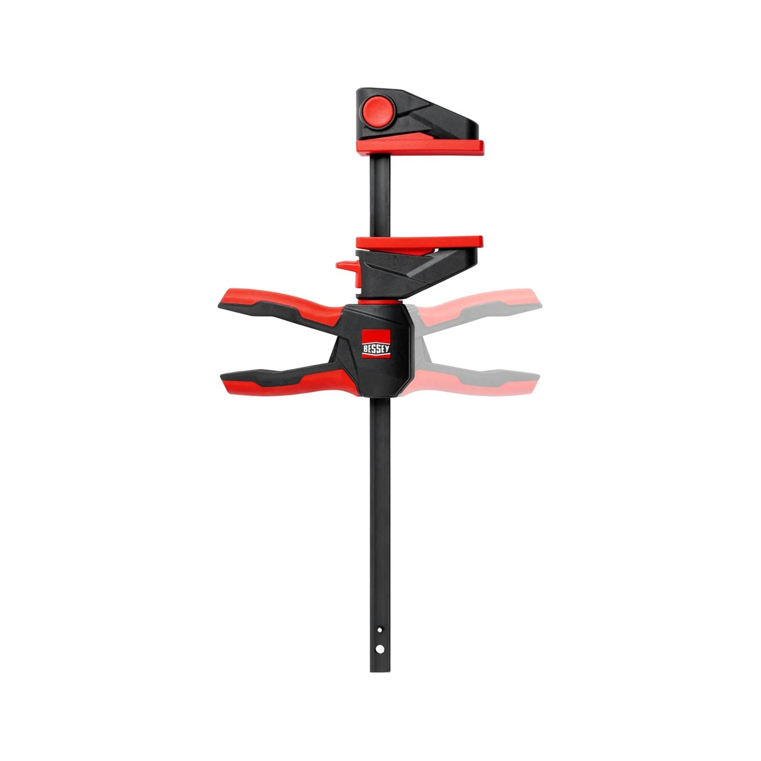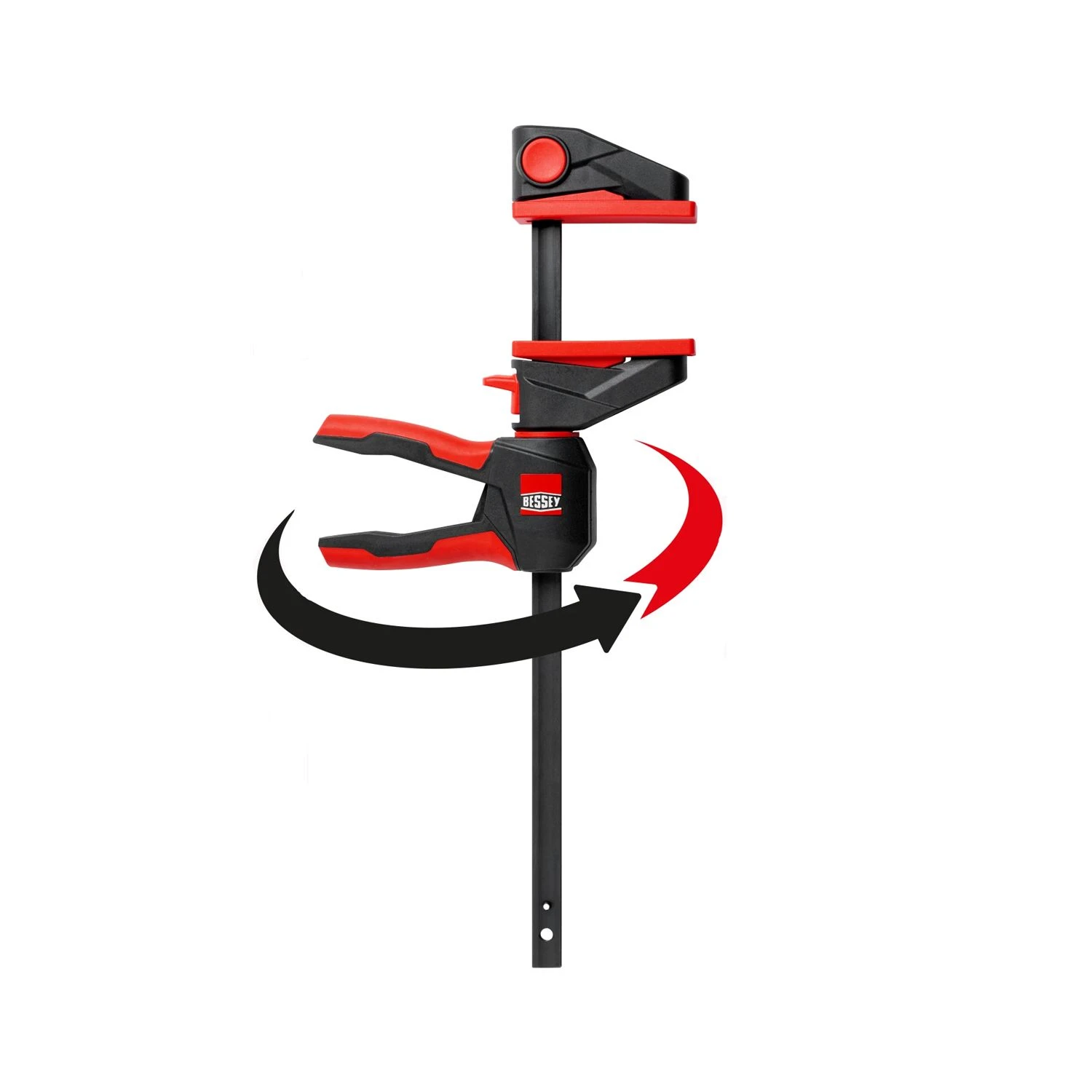 The Bessey EZ360 One-Handed 360° Clamp is extremely versatile. Its innovative 360° turning mechanism allows you to adjust the handle position to the clamping task at hand. A 12-step latching mechanism securely holds the selected handle position.