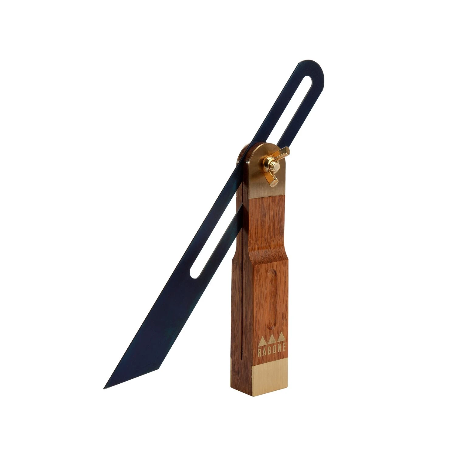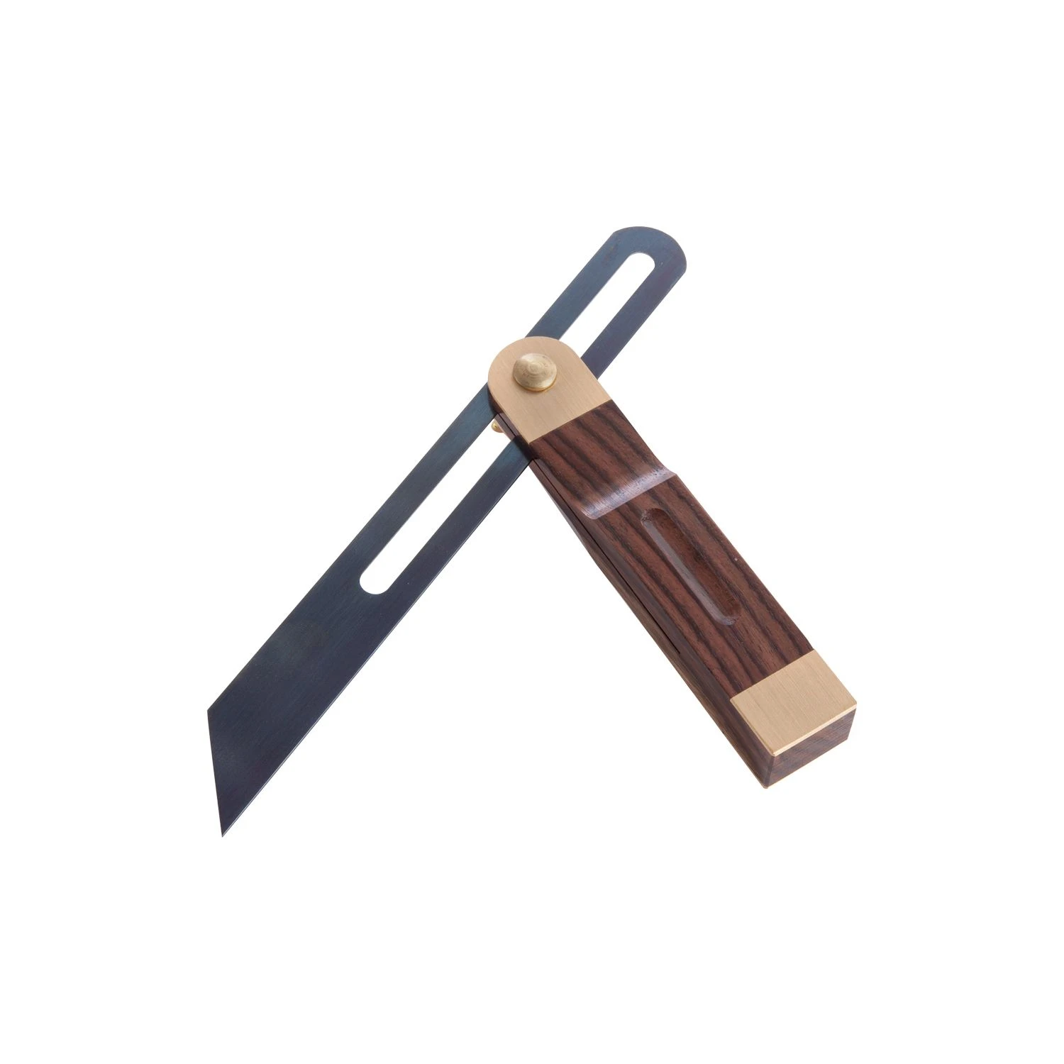 Hardwood stock and brass ends with wing nut adjustment for quick blade setting. The offset slot in the blade enables a line to be drawn the full length of the blade without interference from the stock. Used for transferring angles from one piece of work to the other.