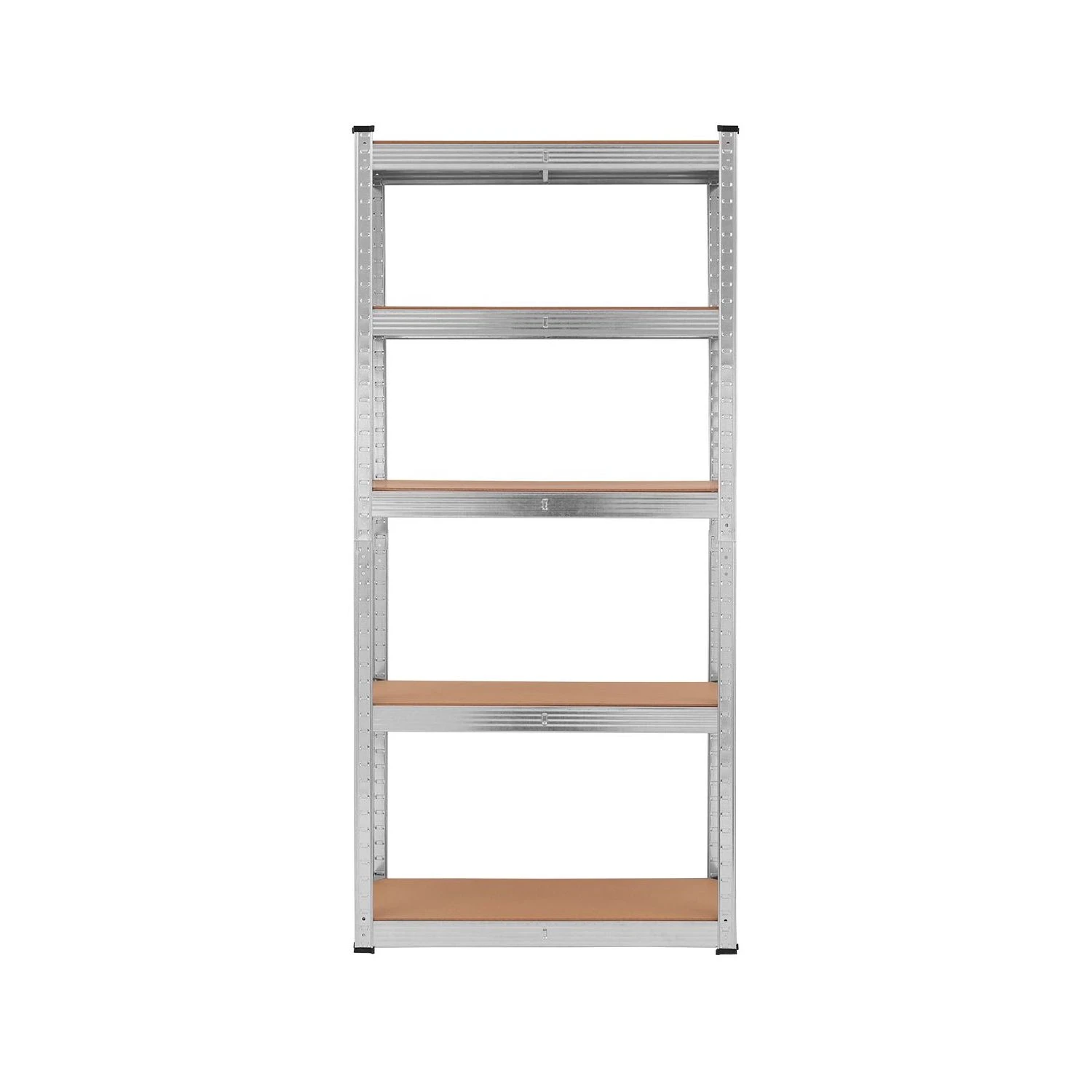 - Durable: The frame on the garage storage shelves is made from heavy duty steel and galvanised metal for durability. A solid 5 mm thick MDF board beam holds up to 175kg per shelf and 875kg whole rack (evenly distributed). Each shelf has been thoroughly tested and is very stable and safe to use. Cross braces under each shelf provide additional stability