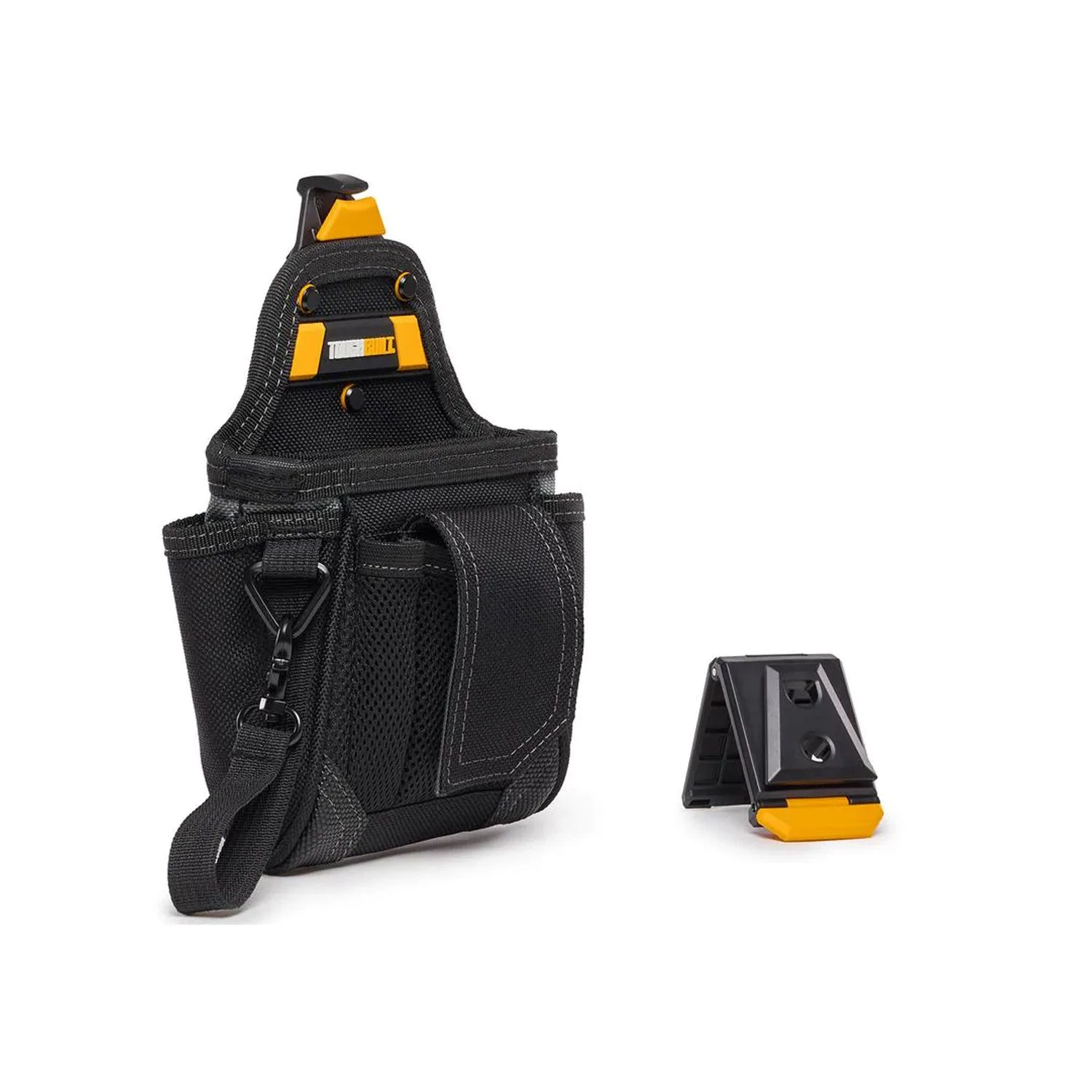 The ToughBuilt TOU-CT-32-A Warehouse Pouch transforms how professionals carry their tools. The patented ClipTech Hub allows this pouch to clip on and off any belt. Works great alone, or combined with any ClipTech tool belt. This pouch fits the ever-changing needs of the professional. Its 9 pockets and loops include a covered cell phone pocket, ToughBuilt notebook pocket,and tape loop with metal hook. With rugged construction and heavy-duty pocket reinforcement this reliable pouch withstands the most rigorous working conditions.