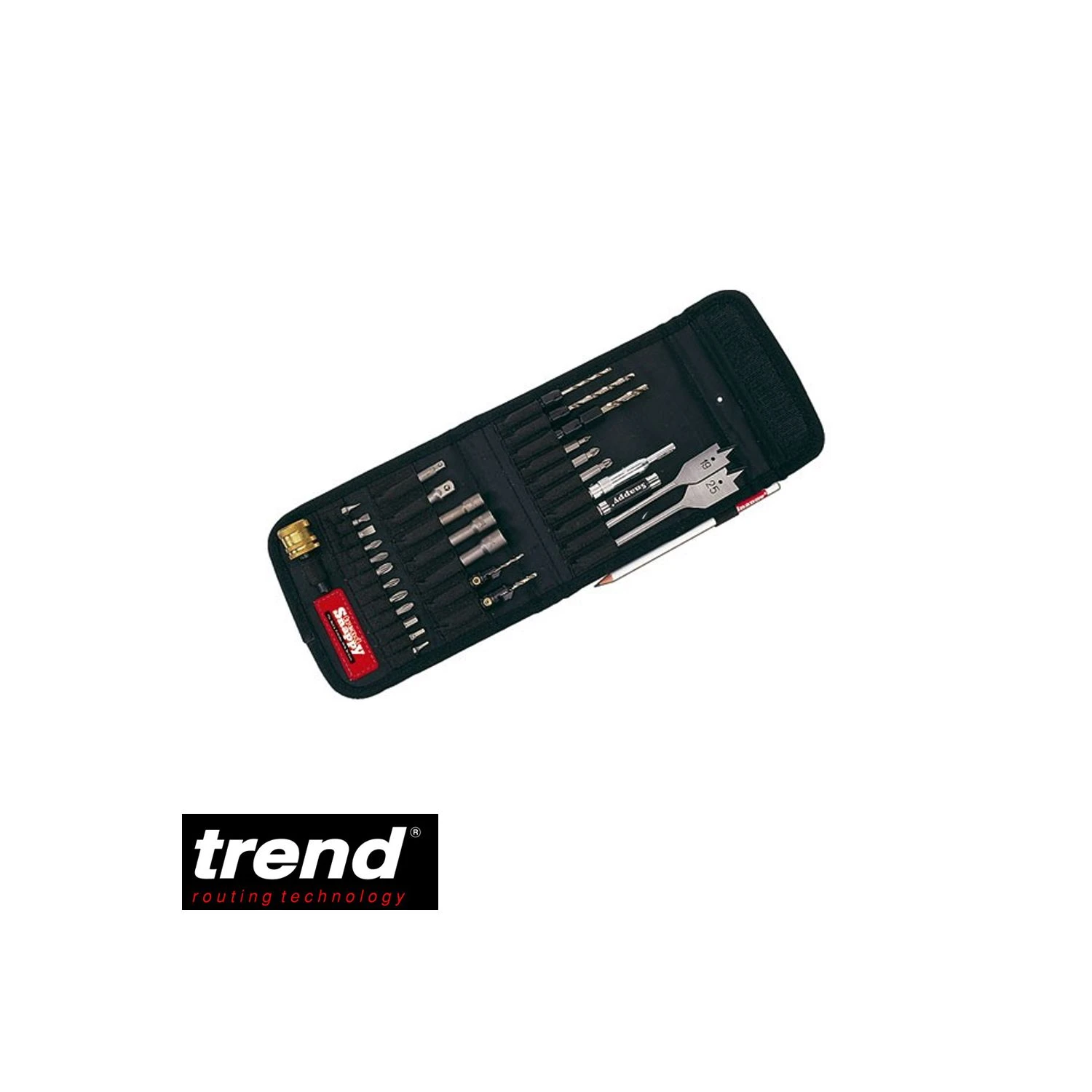 Heavy duty fabric tool holder with a selection of assorted Trend Snappy tools. Standard Quick Chuck which is fitted into a standard 3/8-inch key or keyless chuck and allows Trend Snappy attachments or any direct drive 1/4-inch hex bits can then ‘snap’ in effortlessly.