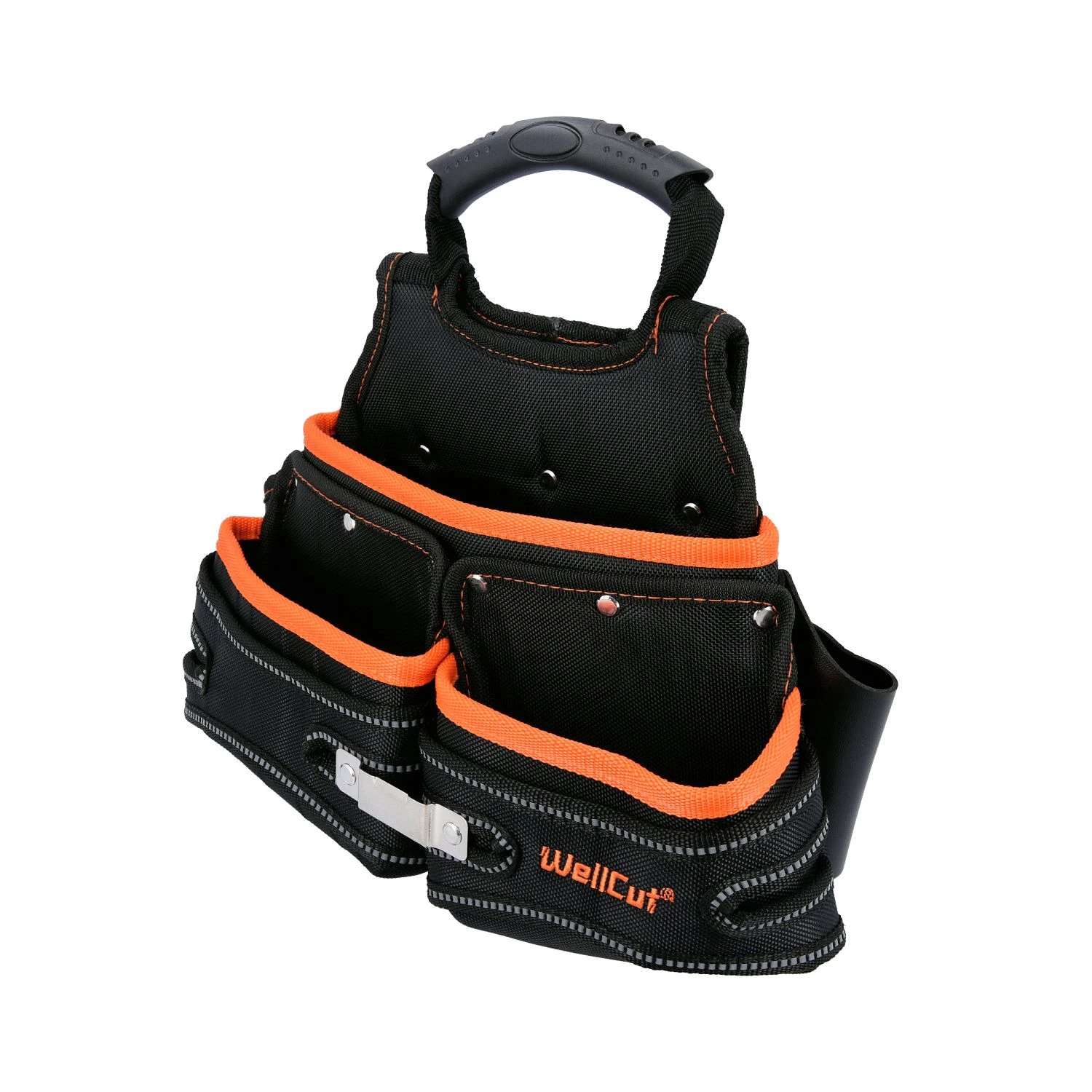 WellCut carry pouch with perfectly wide pockets was designed for sharp fixings like screws and nails. A universal size that works on any belt size. Provides quick access of your tools and equipment not to mention saving you heaps of time climbing down any ladders of stairs to reach you box of screws. Features include 1 large hard wearing pocket resistant to sharp objects. In addition there are 2 medium size hard wearing pockets. Ridged pockets built to keep their shape to allow hassle free removal of screws of nails.