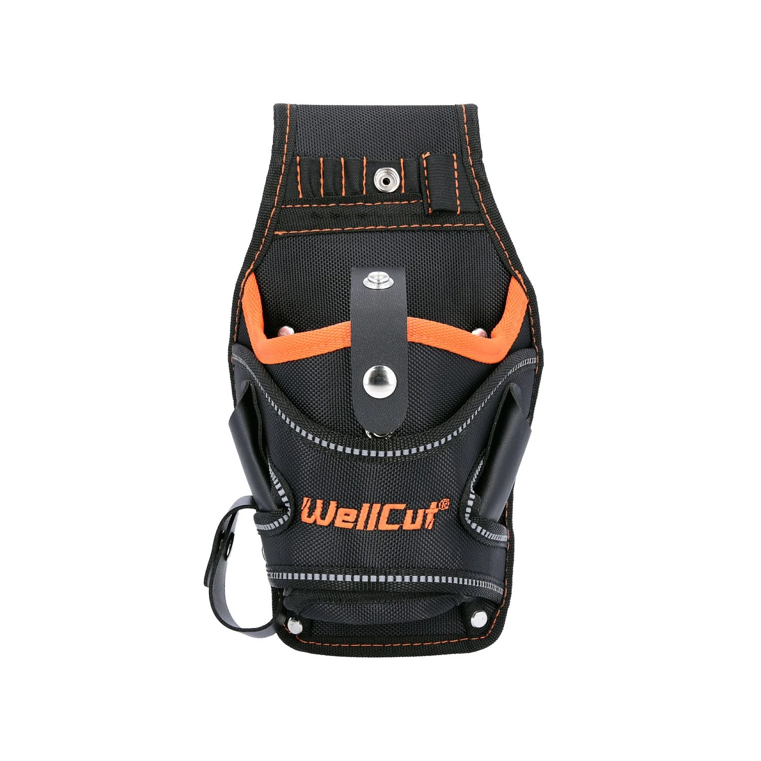 Universal drill holster by WellCut designed with perfectly wide pockets was made for various drill types including mains powered and cordless. Provides quick access of your drill and smaller pieces of equipment not to mention a safe place to keep your expensive drill. Features include 1 large hard wearing universal drill pocket with clip. In addition there are 2 medium size hard wearing pockets. Ridged pockets built to keep their shape to allow hassle free removal of screws of nails.